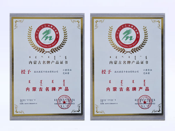 >>>内蒙古名牌产品证书